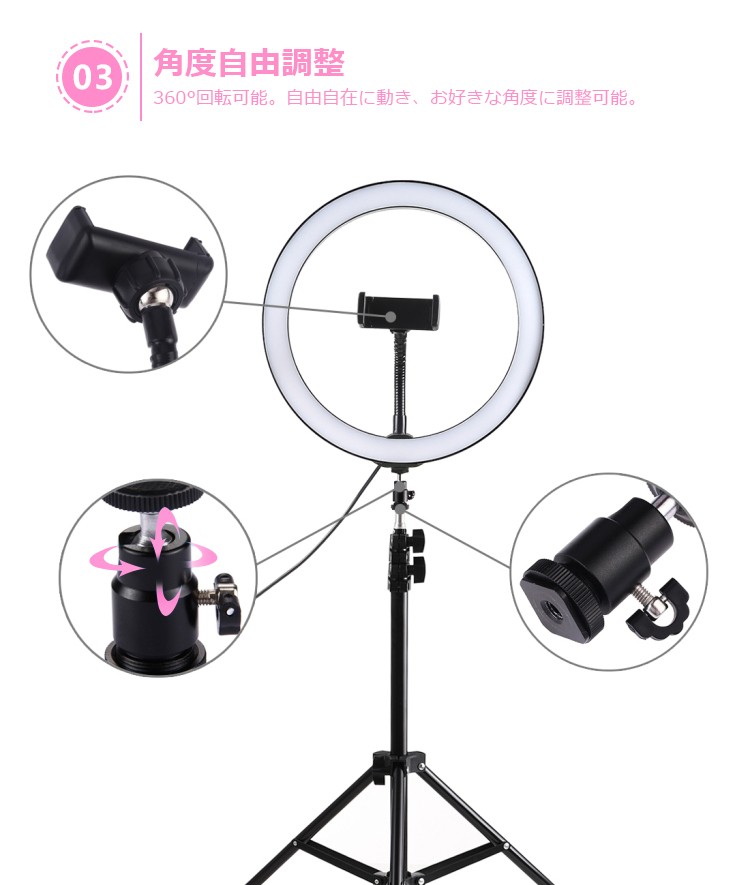 LEDリングライト 撮影照明 調光 調色 撮影用 LED 照明 スマホ ライトスタンド 女の子 自撮りライト スマホ ビデオ撮影用 写真撮影 携帯便利 角度調整 美顔
