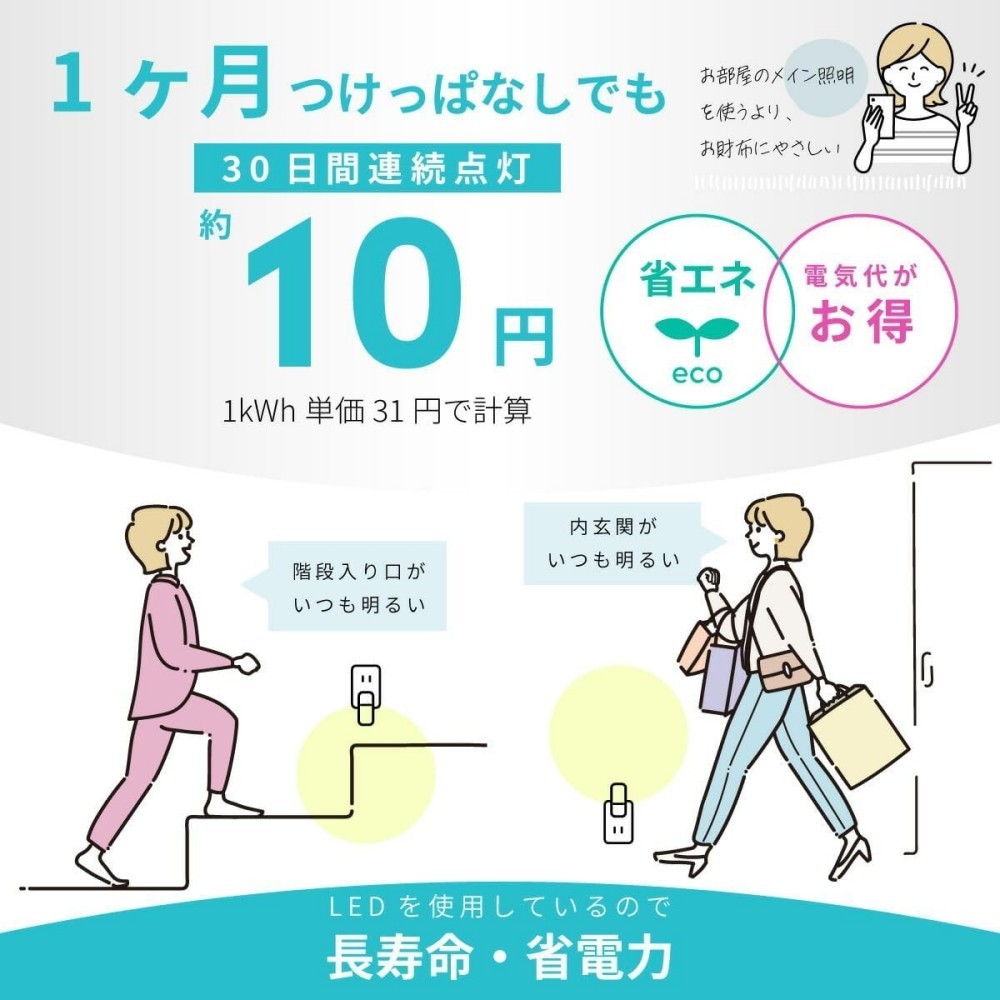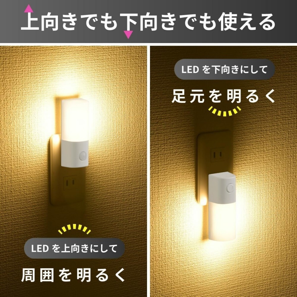 LEDナイトライト コンセント差込 屋内 スイッチ式 常夜灯 足元灯 フットライト 簡単設置 インテリア 室内用ledライト 橙色 LED 照明器具