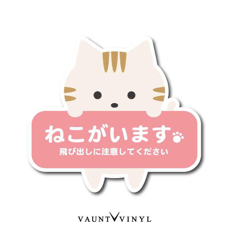 ねこがいます 飛び出し注意 シール ステッカー 猫 ネコ 玄関 脱走防止 茶トラ