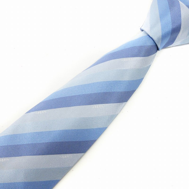 フェンディ FENDI ネクタイ ワイドタイ ストライプ シルク ロゴ 刺繍 青 ブルー 小物 ■GY19 ☆AA★ メンズ