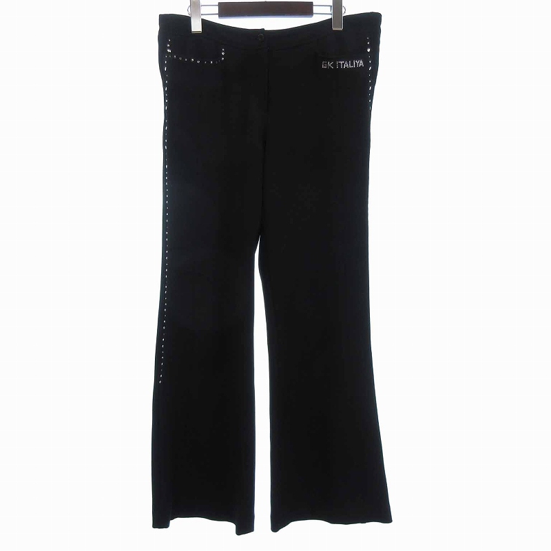 イタリヤ 伊太利屋 パンツ スラックス ロング テーパード ラインストーン 黒 ブラック 9 M位 レディース