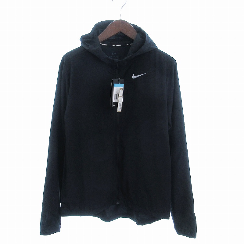 未使用品 ナイキ NIKE タグ付き ラン ストライプ ウーブンジャケット ジップアップ ワンポイント CU5354-010 黒 ブラック M メンズ