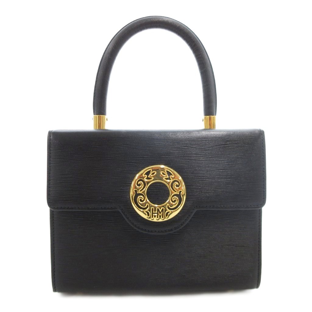 ハナエモリ HANAE MORI ハンドバッグ バニティ スクエア ゴールド金具 レザー 黒 ブラック /GV ■GY99 レディース