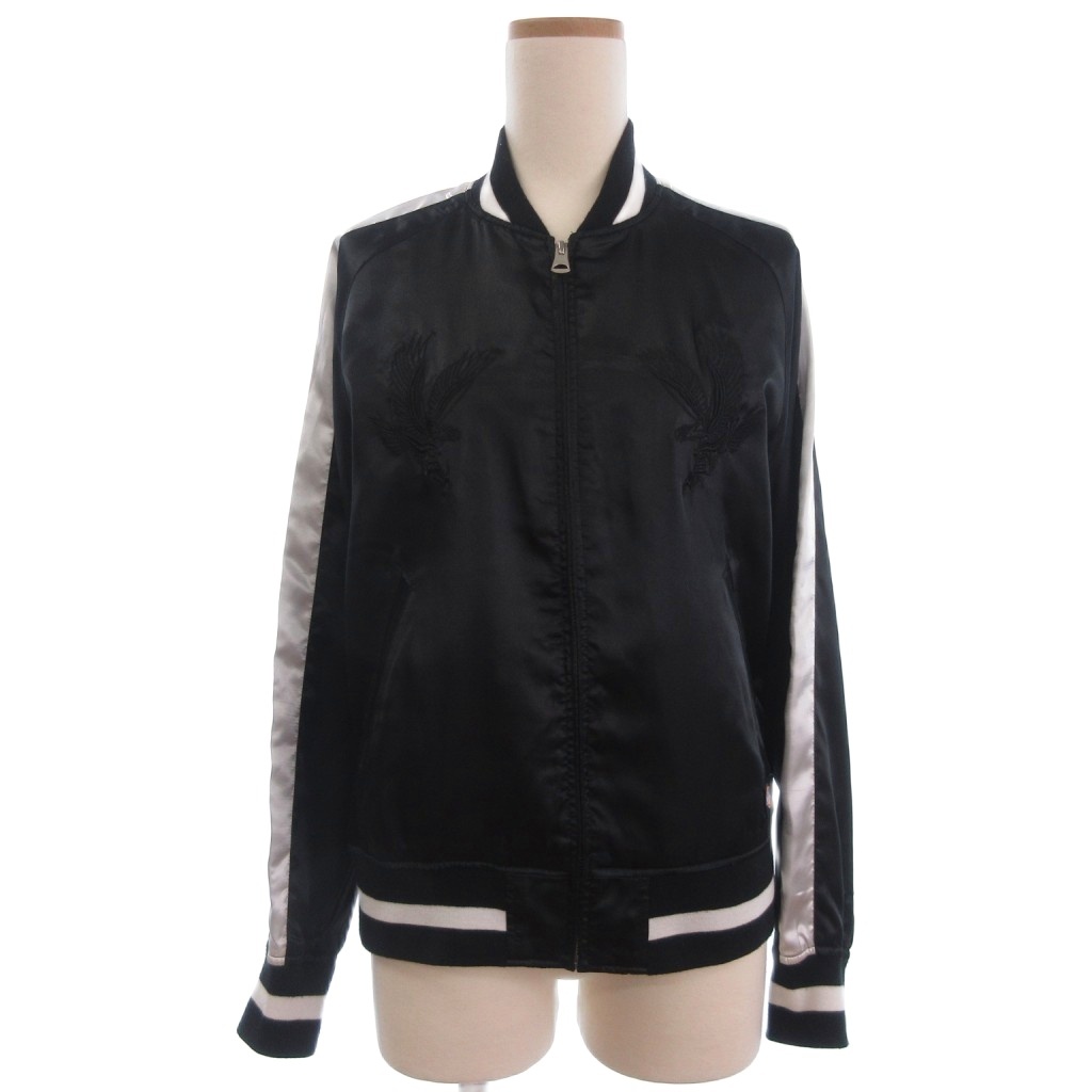 ディッキーズ Dickies スカジャン ジャケット ジャンパー ジップアップ 長袖 タカ柄 刺繍 M 黒 ブラック レディース