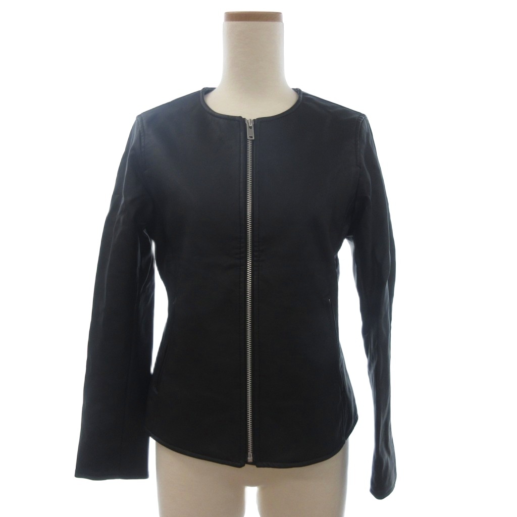 ユニクロ UNIQLO フェイクレザージャケット ライダース ノーカラー フルジップ 412798 黒 ブラック S ■OOM レディース