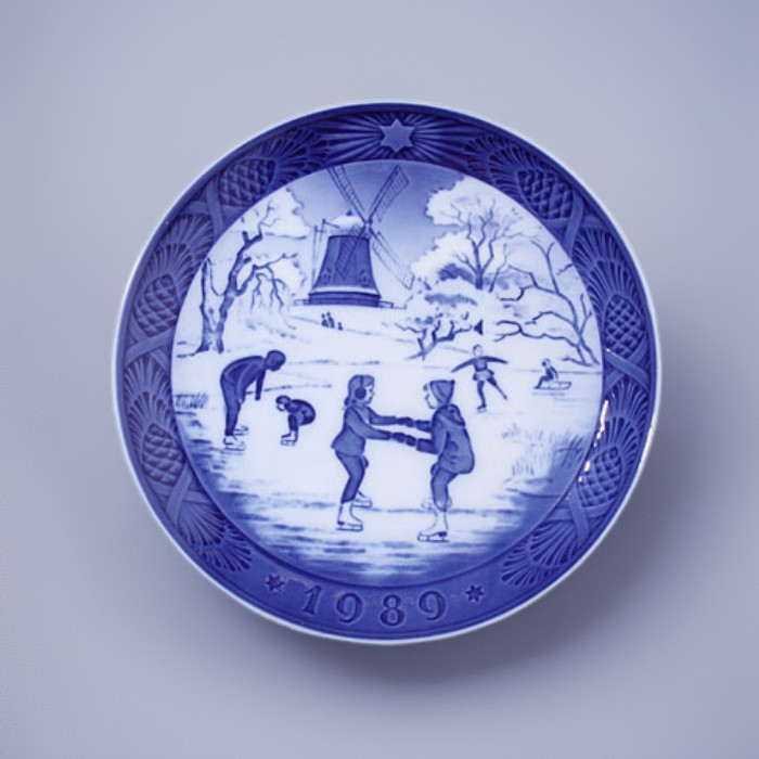 未使用品 ROYAL COPENHAGEN ロイヤルコペンハーゲン イヤープレート 1989年 思い出のスケートリンク BLUE ブルー /◆