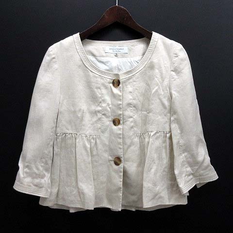 スピック&スパン Spick&Span リネン ノーカラー ジャケット 七分袖 ライトベージュ 36 レディース
