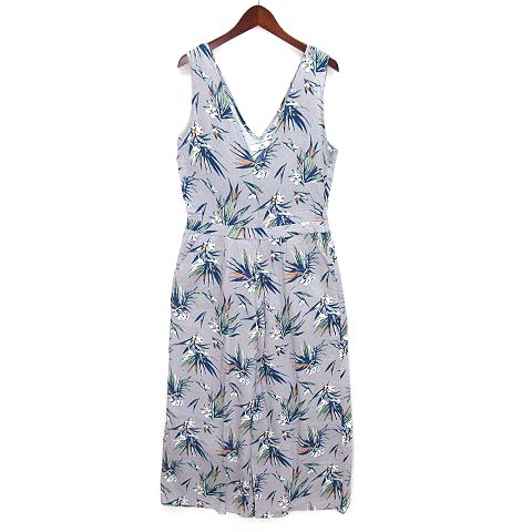 アーバンリサーチ サニーレーベル URBAN RESEARCH Sonny Label ドラセナ柄 オールインワン サロペット レーヨン リネン 薄手 グレー F