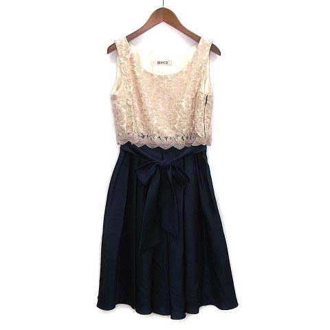 エメ AIMER ノースリーブ ドレス ワンピース 膝丈 レース シャンタンサテン 切替 リボン ピンク ネイビー 9 レディース