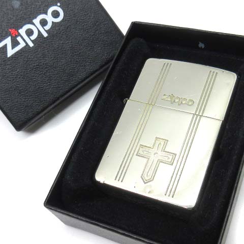 ジッポー ZIPPO クロス ストライプラインカット オイルライター シリアルナンバー入り 2003年製 着火確認済み