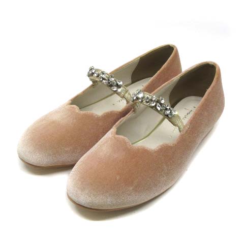 未使用品 フランシュリッペ franche lippee ベロア ビジュー ストラップ パンプス フラットシューズ ピンクベージュ系 S 23.5cm