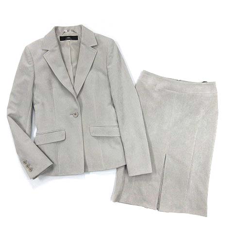 イネド INED ベロア スーツ ジャケット スカート ライトグレー 9 レディース