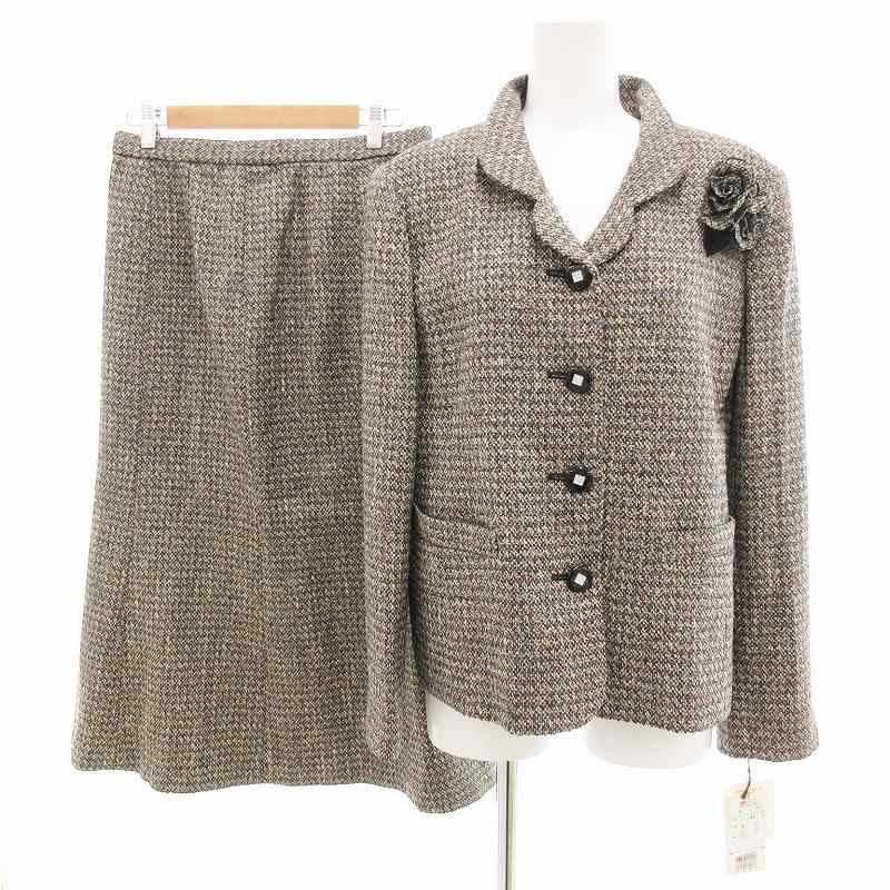 未使用品 ベルアステカ Belleartecs タグ付き セットアップ ジャケット スカート シルク混 ツイード ひざ丈 13 グレー /JS レディース