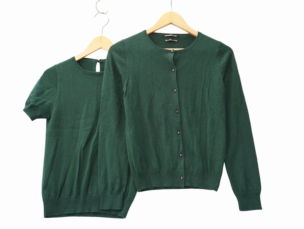 ナイスクラップ NICE CLAUP クルーネック 半袖 ニット トップス / カーディガン セットアップ GREEN(グリーン) 夏春秋 レディース