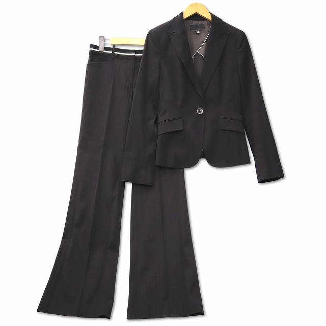 アイシービー iCB ストライプ シングル テーラードジャケット パンツスーツ 38 こげ茶 レディース
