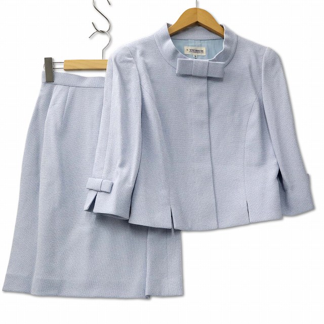 XYZ-HOUSE リボン付き 比翼ボタンジャケット スカート スーツ セットアップ 9 ブルー レディース