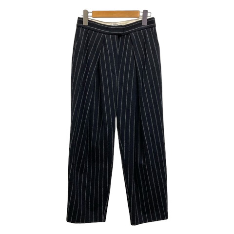 フレイアイディー FRAY I.D パンツ テーパードパンツ タック ストライプ ウール混 厚手 1 紺 ネイビー 白 ホワイト レディース