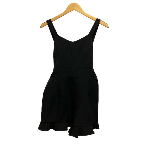 エブリン evelyn サロペット ショートパンツ フリル リボン 無地 黒 ブラック レディース