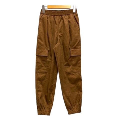 ジーユー GU カーゴパンツ ボトムス ギャザー ウエストゴム 無地 S 茶 ブラウン レディース