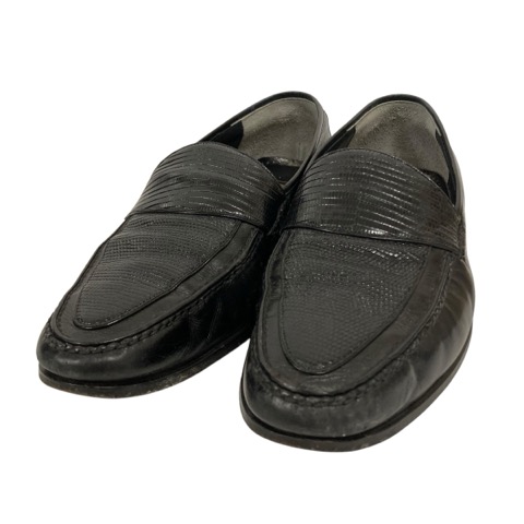 ミラショーン mila schon ローファー スリッポン 型押し 総柄 8 1/2 黒 ブラック メンズ
