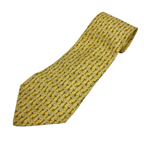 サルヴァトーレフェラガモ Salvatore Ferragamo ネクタイ ワイドタイ 総柄 絹 シルク 黄 イエロー 茶 ブラウン アイボリー マルチカラー メンズ