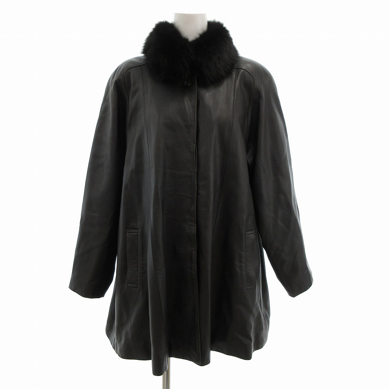JHA JHA レザーコート ミドル ハーフ フェイクファー 9 黒 /UO ■GY99 レディース