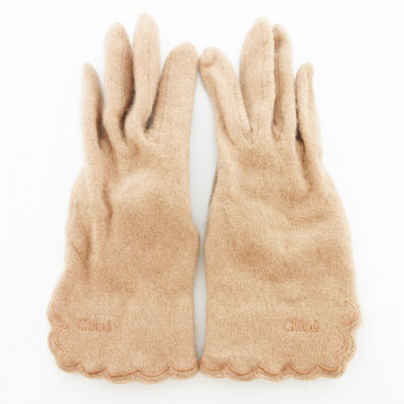 クロエ CHLOE 手袋 グローブ ロゴ刺繍 キャメル /UO ■GY99 ☆AA★ レディース