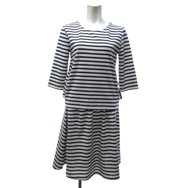 トッコ TOCCO 美品 closetb ボーダーセットアップ 上下 カットソー スカート フリル ギャザー 七分丈 白 ホワイト 黒 ブラック M〜L