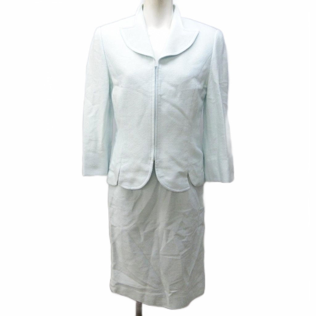 ジュンアシダ jun ashida セットアップ スカートスーツ ジャケット ジップアップ ひざ丈 7分袖 7 約S 水色 ライトブルー IBO79