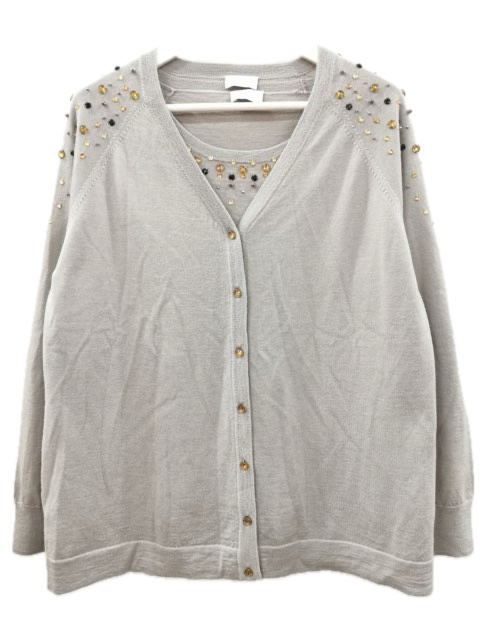 エレガンス Elegance アンサンブル ニット カーディガン 44 ビジュー ウール グレー 長袖 トップス レディース