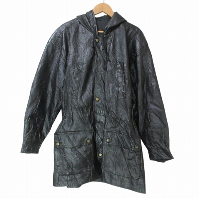 D.A.N.Y. Direct Action New York 中綿 レザー ジャケット フーディー ジップアップ ウエストマーク L 黒 ブラック ■GY09 X メンズ
