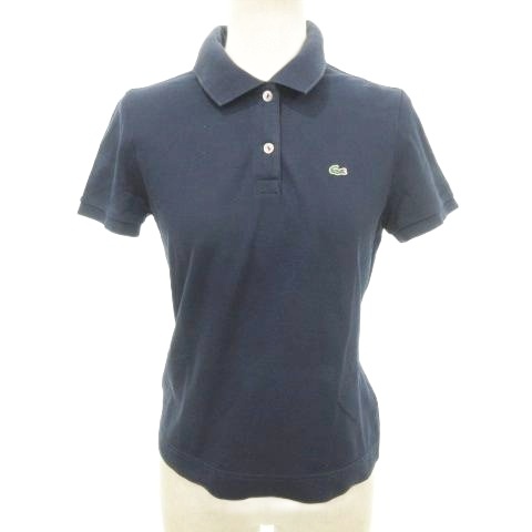ラコステ LACOSTE ポロシャツ 半袖 ワンポイント ロゴ 薄手 40 Mサイズ 紺 ネイビー レディース