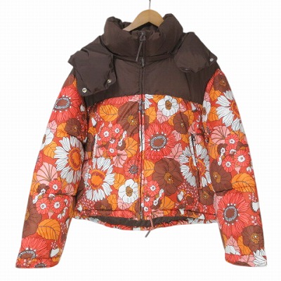 ザラ ZARA 大きいサイズ 中綿ジャケット 花柄 大柄 ジップアップ フード XL 175/100A ブラウン オレンジ X レディース