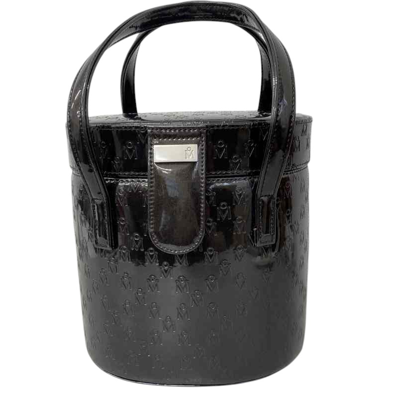 ミキモト MIKIMOTO バニティバッグ ケース ロゴ型押し エナメル ダークブラウン こげ茶 レディース