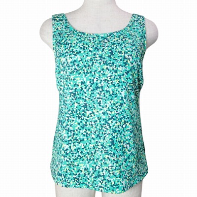 エルエルビーン L.L.BEAN 美品 タンクトップ ナイロンストレッチ トップス 総柄 4REG M相当 グリーン系 X レディース
