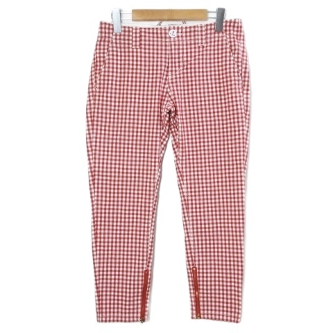 トミーヒルフィガー TOMMY HILFIGER 美品 ギンガムチェックパンツ クロップド テーパード ストレッチ M 赤 白 X レディース