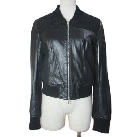 ペイトンプレイス PEYTON PLACE ラムレザー×レース ジャケット ブルゾン ジップアップ M 黒 ブラック /X レディース