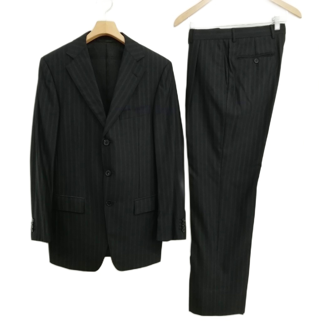 エルメネジルドゼニア Ermenegildo Zegna ストライプ シングル 3B スーツ セットアップ ジャケット スラックス 46 ブラック メンズ