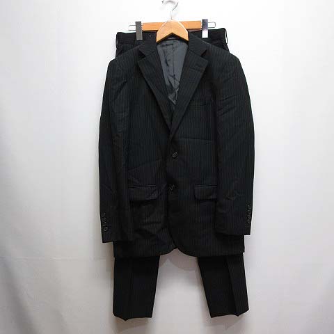 Takashimaya 高島屋 ELEFIT ストライプ柄 スーツ セットアップ 黒 ブラック ジャケット パンツ 背抜き 裏地付き メンズ