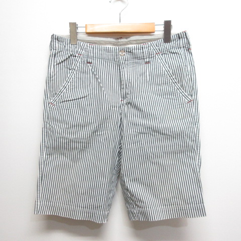 エンポリオアルマーニ EMPORIO ARMANI EA7 ストライプ柄 ショート ハーフ パンツ XS 白×グレー ストレッチ コットン ジッパーフライ 正規