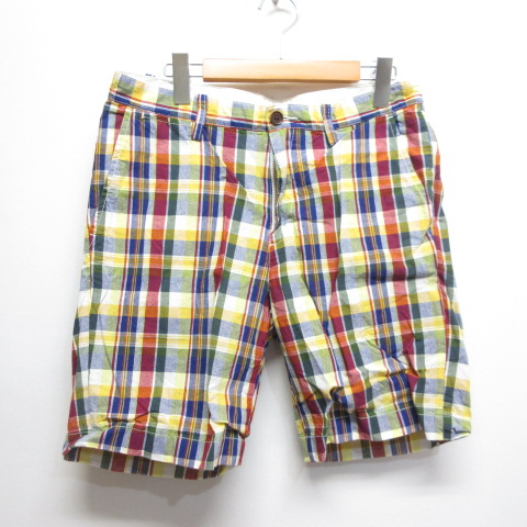 グローバルワーク GLOBAL WORK チェック柄 コットン ショート ハーフ パンツ M ジッパーフライ メンズ