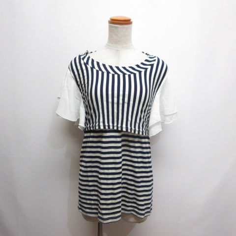 ミルクティー Milk tea マタニティ 授乳服 トップス 半袖 カットソー ボーダー柄 アイボリー×ネイビー レディース