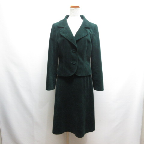 エムズグレイシー M'S GRACY ベロア ジャケット スカート セットアップ 40 緑 グリーン スーツ 裏地付き 日本製 レディース