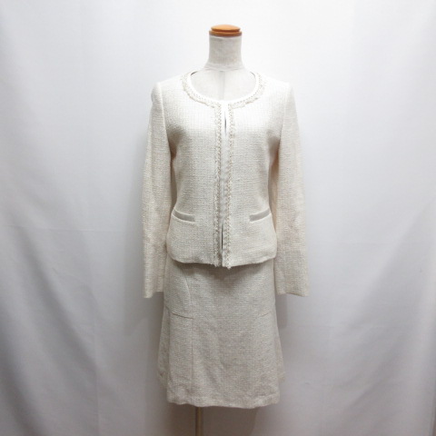 アンタイトル UNTITLED スーツ セットアップ ノーカラー ラメ ツイード ジャケット スカート 2 アイボリー 裏地付き 日本製 レディース