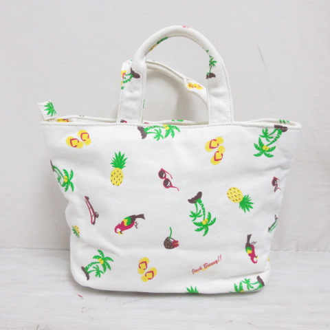 パーリーゲイツ PEARLY GATES ジャックバニー Jack Bunny バカンス柄 カート バッグ ハンド トート キャンバス 白 ホワイト ゴルフ