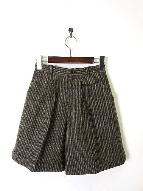 GAZON キュロット ショートパンツ ウール チェック柄 S ブラウン 茶 カーキ グレー レディース