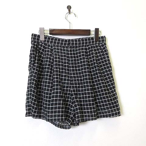アダムエロペ Adam et Rope' ショートパンツ チェック ウインドウペン タック シルク コットン S 36 黒 ブラック 白 ホワイト レディース