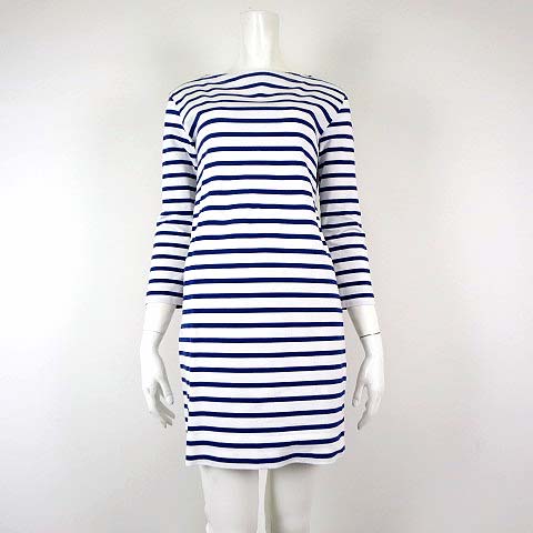 プラステ PLST シャツ バスクシャツ チュニック ワンピース 7分袖 ボーダー L 白 ホワイト 青 ブルー レディース