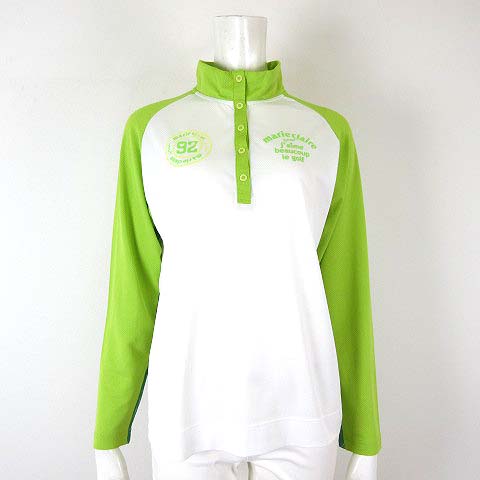 マリクレール MARIE CLAIRE スポーツ ゴルフ シャツ ハーフボタン ロゴ ドライ メッシュ 切替 ハイネック ラグランスリーブ 長袖 L 黄緑 白