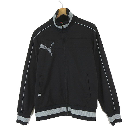 プーマ PUMA 日本製 ジャケット ジャージ トラックジャケット ロゴ プリント ジップアップ 長袖 L 黒 ブラック グレー 国内正規品 メンズ
